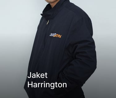 Risa Konveksi melayani pembuatan jaket bomber custom, jaket taktikal, dan jaket Harrington untuk komunitas dan event di Bekasi. Tersedia material waterproof, parasut, fleece, dan canvas dengan opsi bordir maupun sablon untuk keperluan event, gathering, hingga merchandise brand.